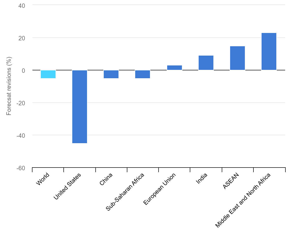 - 인도, 유럽, 그리고 대부분의 신흥 및 개발도상국의 재생에너지 전망은 작년 전망보다 긍정적.